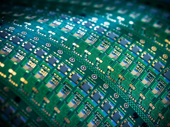 Close-up of wire bonding, part of Cicor's microelectronics assembly services