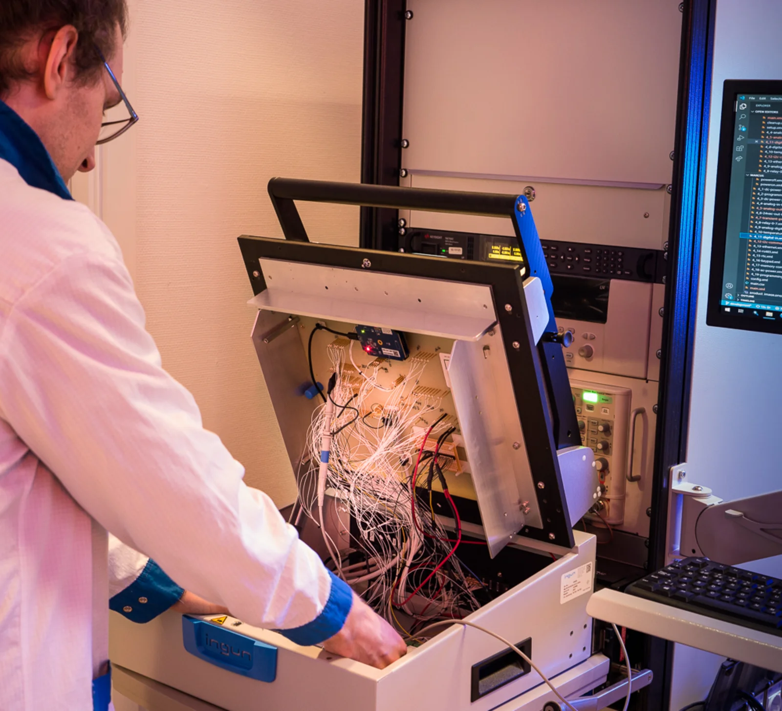 Reliable test systems are essential for ensuring the high quality of electronic components and products. The design of a test system can vary significantly depending on the product and its specific testing requirements. It has therefore become increasingly important to develop fully customised product testing systems that are tailored to meet the exact needs of customers.