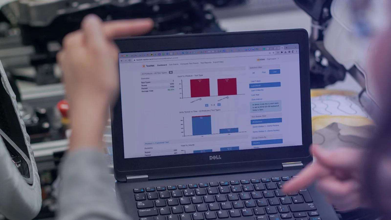 Another advantage is the ability to analyze the overall test capacity. TestNet provides your company with the opportunity to track trends and identify any changes in production quality and speed. It also helps quickly detect bottlenecks in the production process and optimize production goals