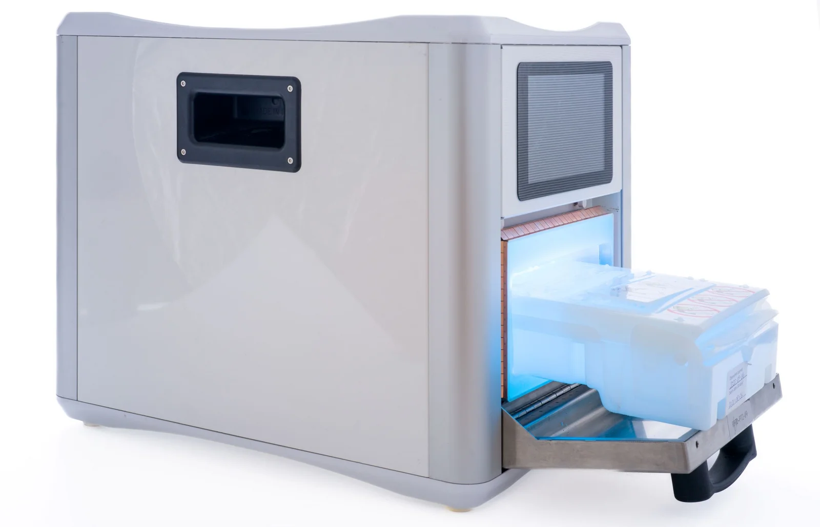 The equipment uses advanced RF technology for rapid and adaptive thawing up to ten times faster than conventional water bath methods, which is a crucial time difference when lives are at stake.